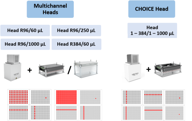 - Head R allows precise parallel pipetting in 96 or 384 channels