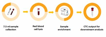Automatizált sejtszeparáló rendszer a teljesen ép és életképes keringő tumorsejtek (CTC-k) dúsítására kis mennyiségű vérből. A dúsított CTC-k a következő molekuláris elemzésekre és diagnosztikai vizsgálatokra használhatók fel
