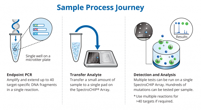 - Optimalizované reagencie – jednoduché reagencie iPLEX, UltraSEEK nebo MassCLEAVE na bázi PCR