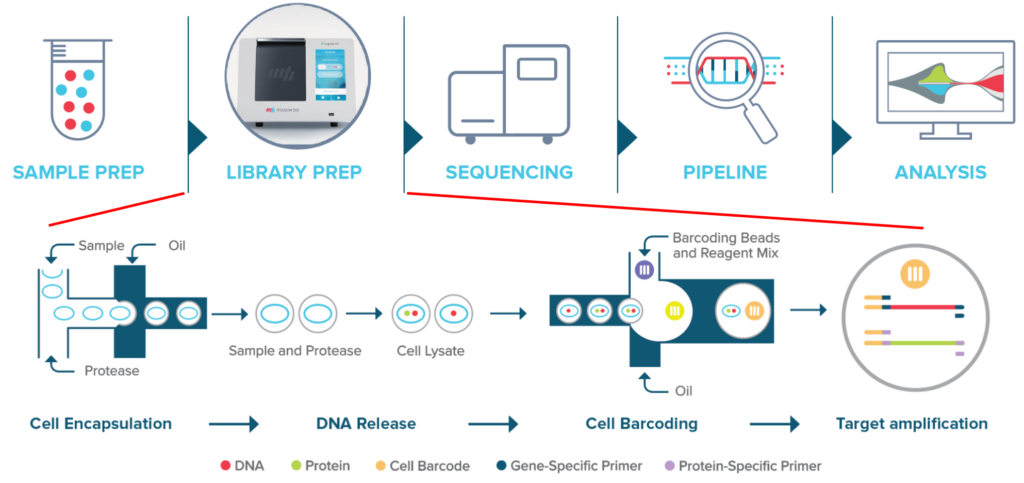 Kapénková mikrofluidní platforma umožňuje přístup k DNA na úrovni jednotlivých buněk. Pracovní postup s dvoustupňovou enkapsulací poskytuje flexibilitu pro přizpůsobení. Uvolněná, barkodovaná a amplifikovaná DNA je připravena k přípravě NGS knihoven.